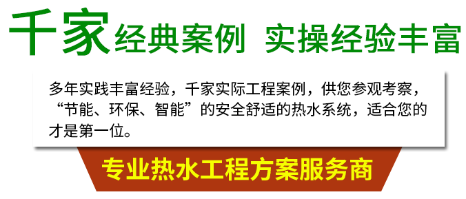 多年實踐豐富經驗,千家實際工程案例,供您參觀考察,“節能、環保、智能”的安全舒適的熱水系統,適合您的才是第一位
